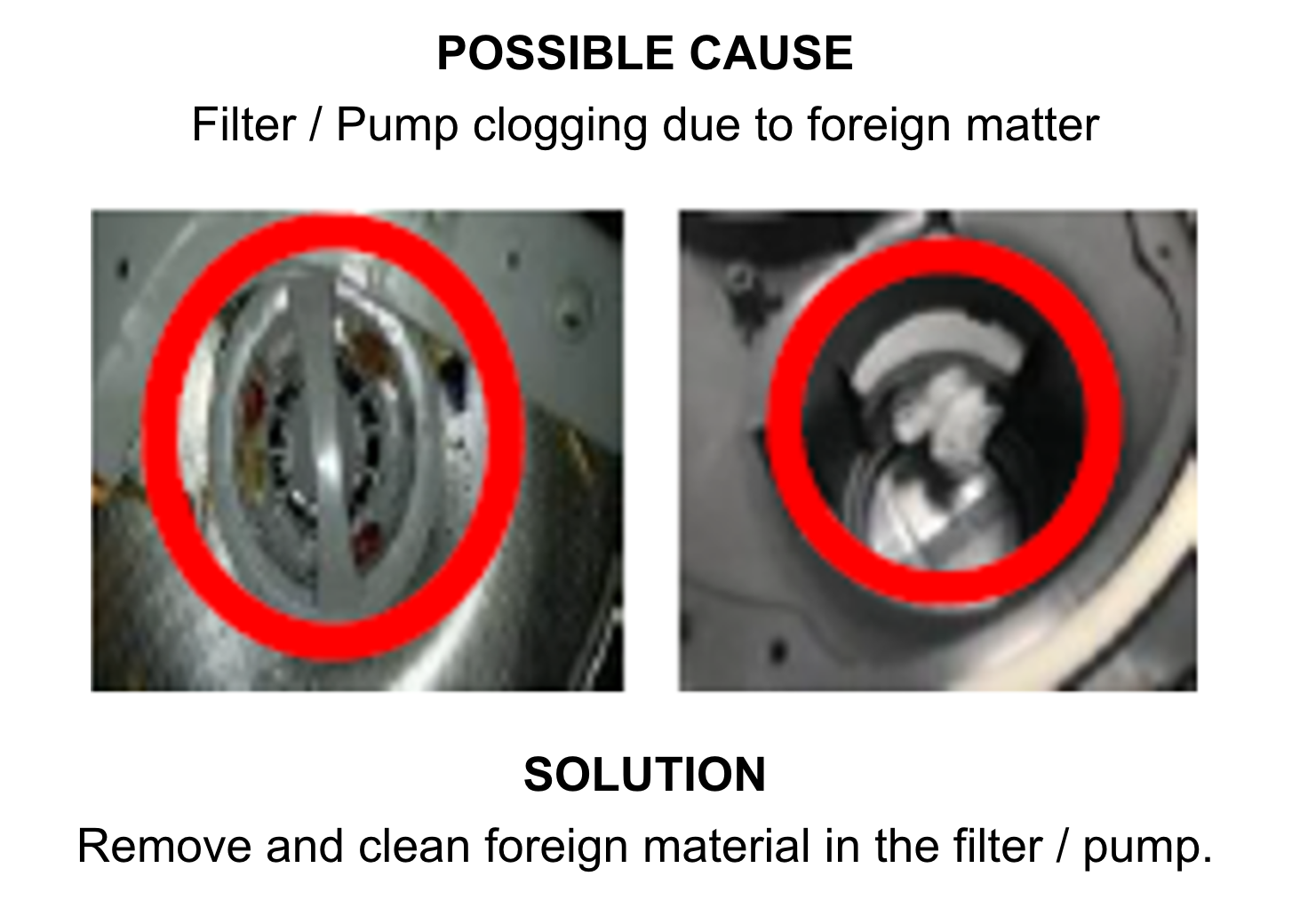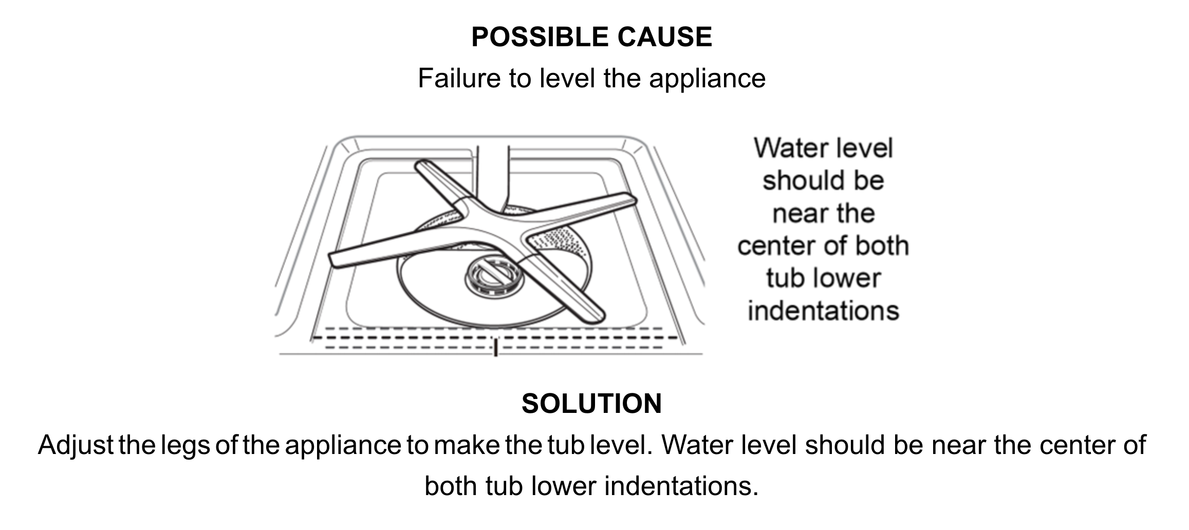 If it's leveled and doesn't have suds, LG says it could be a clogged pump or the top nozzle misaligned/damaged.
