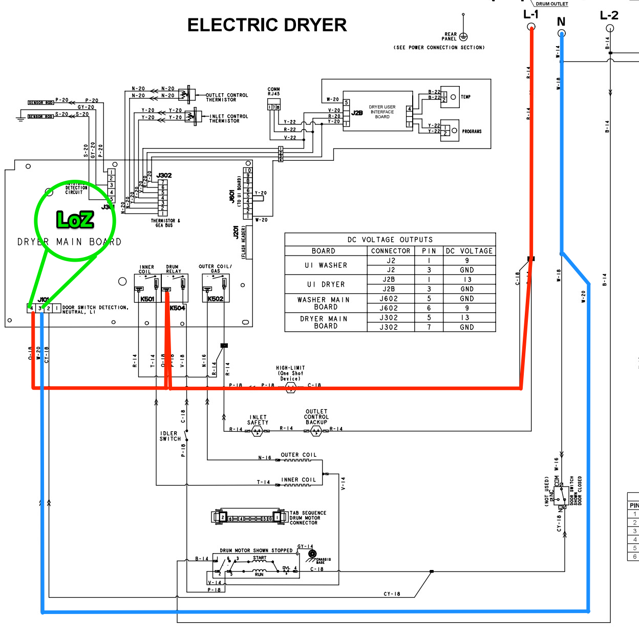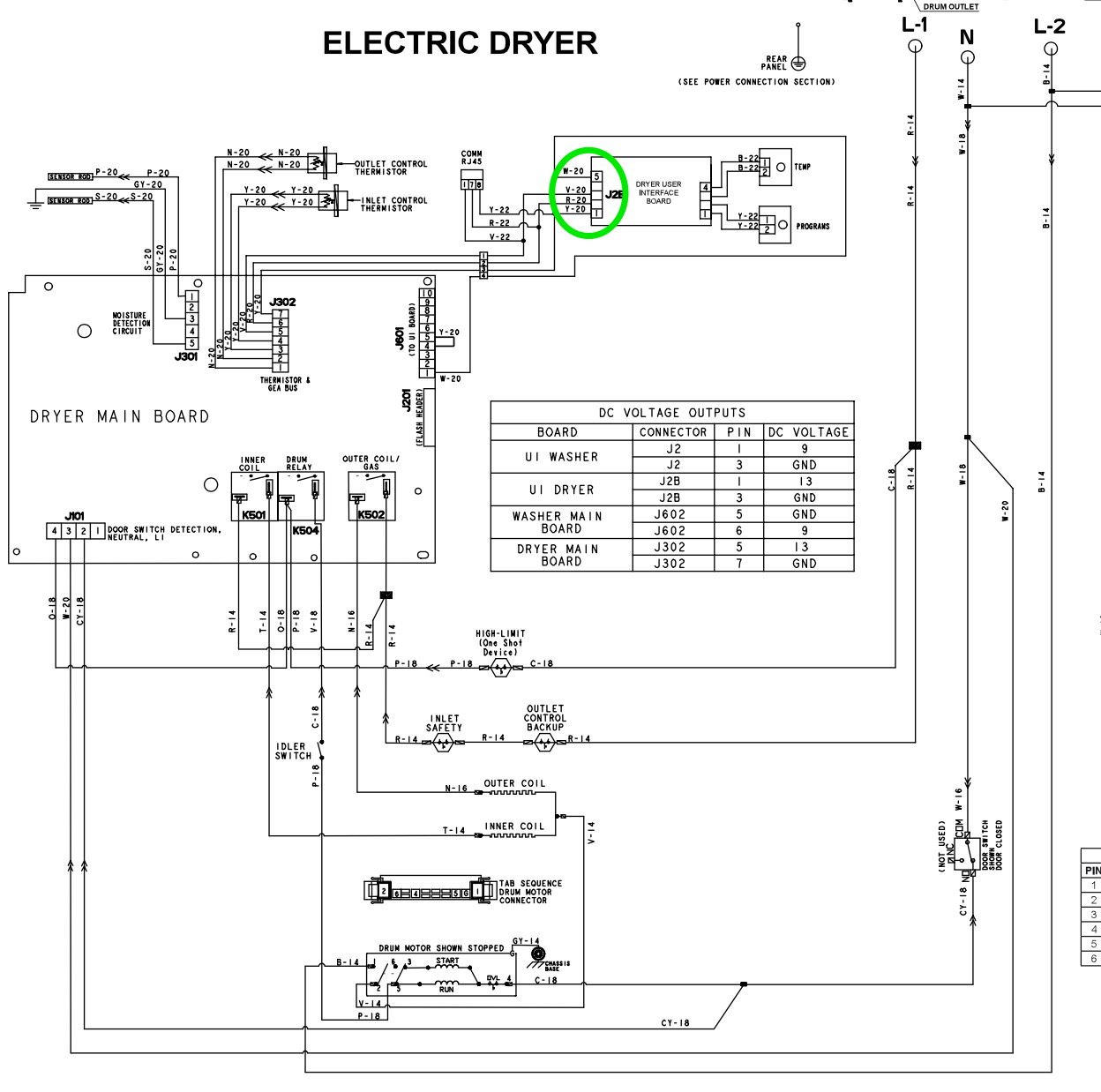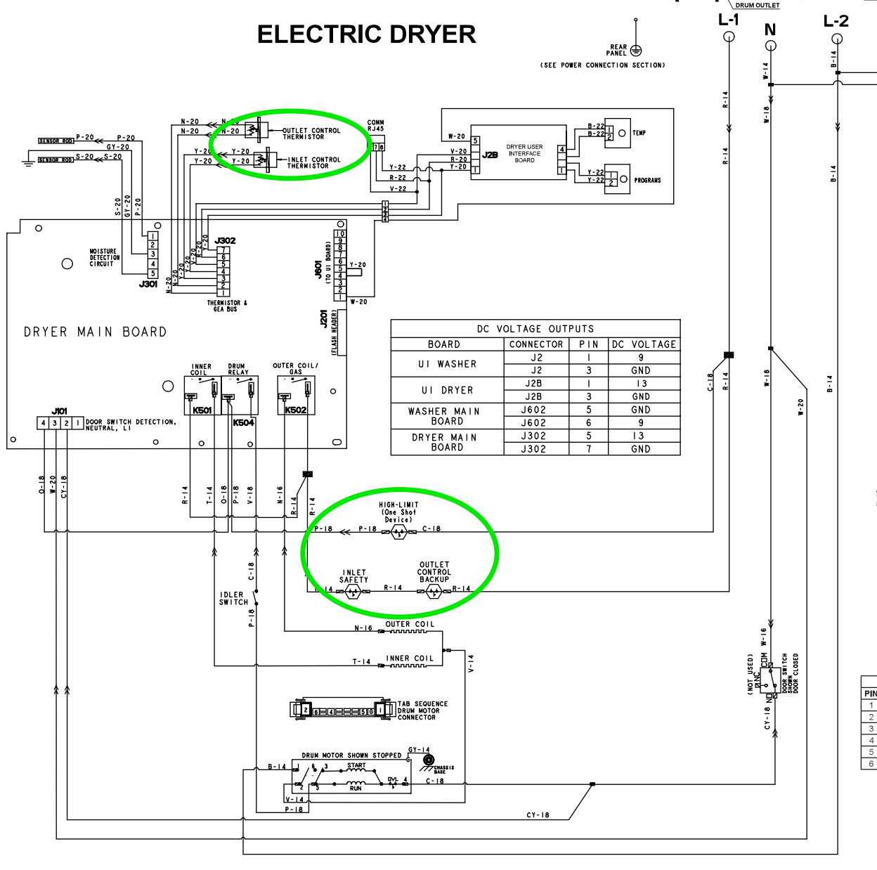 QuoteWhat diagnostics have you already done?: Verified voltage at terminal block. Removed drum and tested all temperature monitoring/ safety devices. Tested voltage from main control to console and found nothing. Replaced control, still no power to dryer side of console.