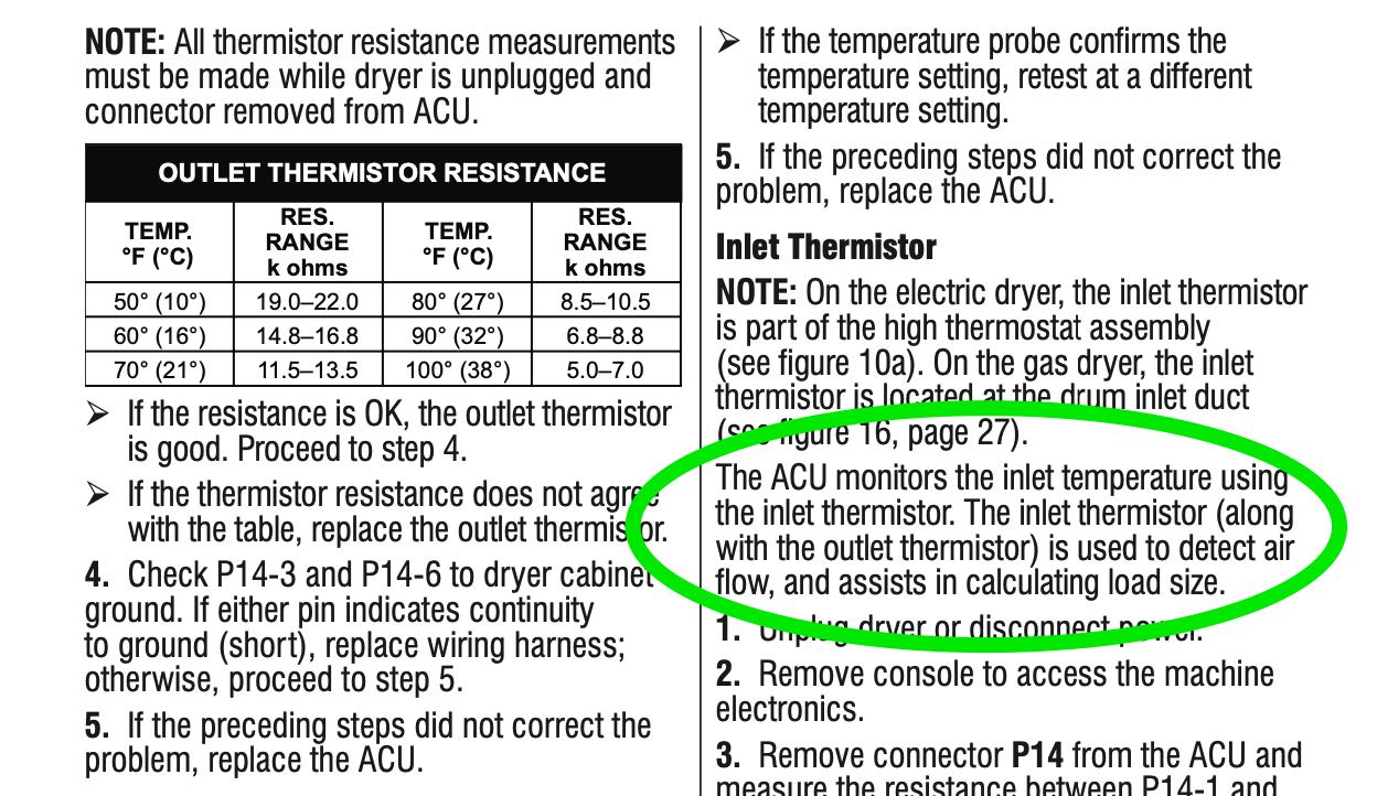 And there's another spec you'll notice that's only given here in the dummy directions -- the spec tables for those thermistors! You can see the outlet thermistor specs above, and the inlet thermistor specs are on that same page: