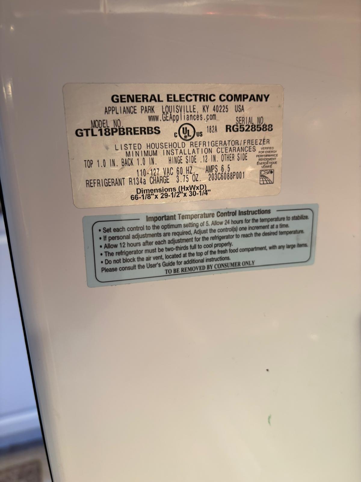 Manufacturer: GE Type of Appliance: Refrigerator Model Number: GTL18PBRERBS Have you validated the model number at an online parts site like Repair Clinic? (yes or no): Yes Have you watched the video on how to search for manuals and have you searched the Downloads section prior to posting this request? (yes or no): Yes Hi Guys, I need a Tech Sheet and Parts List for GE Refrigerator GTL18PBRERBS. Is it the same as GTL18JCPWRBS ? Thanks - Yesterday